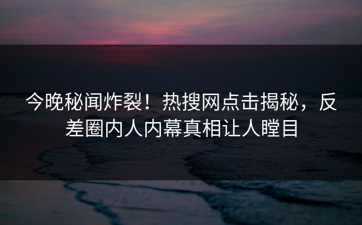 “今晚秘闻炸裂!”这个话题瞬间引爆了热搜平台,网友们的目光齐刷刷地聚焦在这一突如其来的信息之上。细心的网友已经注意到,几乎每一条被曝光的新闻都涉及到一些娱乐圈的反差人物和他们背后鲜为人知的秘密。这不仅仅是一个话题,更是引发了众多讨论,成为了今晚不可忽视的“爆款”。但事实真的是这样简单吗?今晚我们就带您一探究竟,揭开那些神秘的面纱。