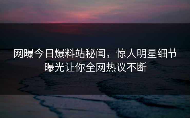 近日,某爆料站再次引发了全民热议。令人震惊的明星细节曝光,让网友们纷纷在社交平台上展开讨论,所有人都在疯狂猜测这些秘闻的真相。娱乐圈的光鲜亮丽背后,总是藏着不为人知的故事,这些细节一经曝光,便引发了网友们的极大关注。无论是那些曾经大红大紫的明星,还是如今低调行事的娱乐圈人物,大家似乎都被这些细节迷住了,纷纷前来围观。