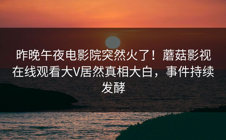 昨晚的午夜,电影院突然火了。这个“火”不仅仅是指观众涌入电影院,而是指一场关于“蘑菇影视”在线观看大V事件的爆炸性新闻,掀起了社会各界的广泛关注。很多人甚至在半夜都不敢入睡,只为了关注这个迅速发酵的新闻,背后究竟隐藏着什么样的真相?